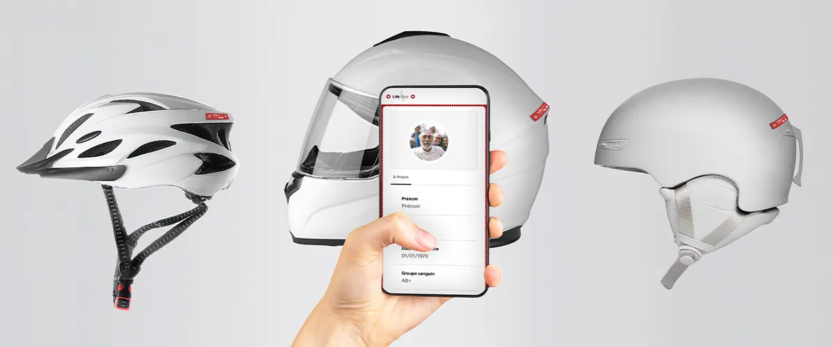 Il suffit de coller LifeStick RIDE sur votre casque pour permettre aux services de secours ou aux premiers témoins d'accéder rapidement et simplement à vos informations vitales et contacts d'urgence.