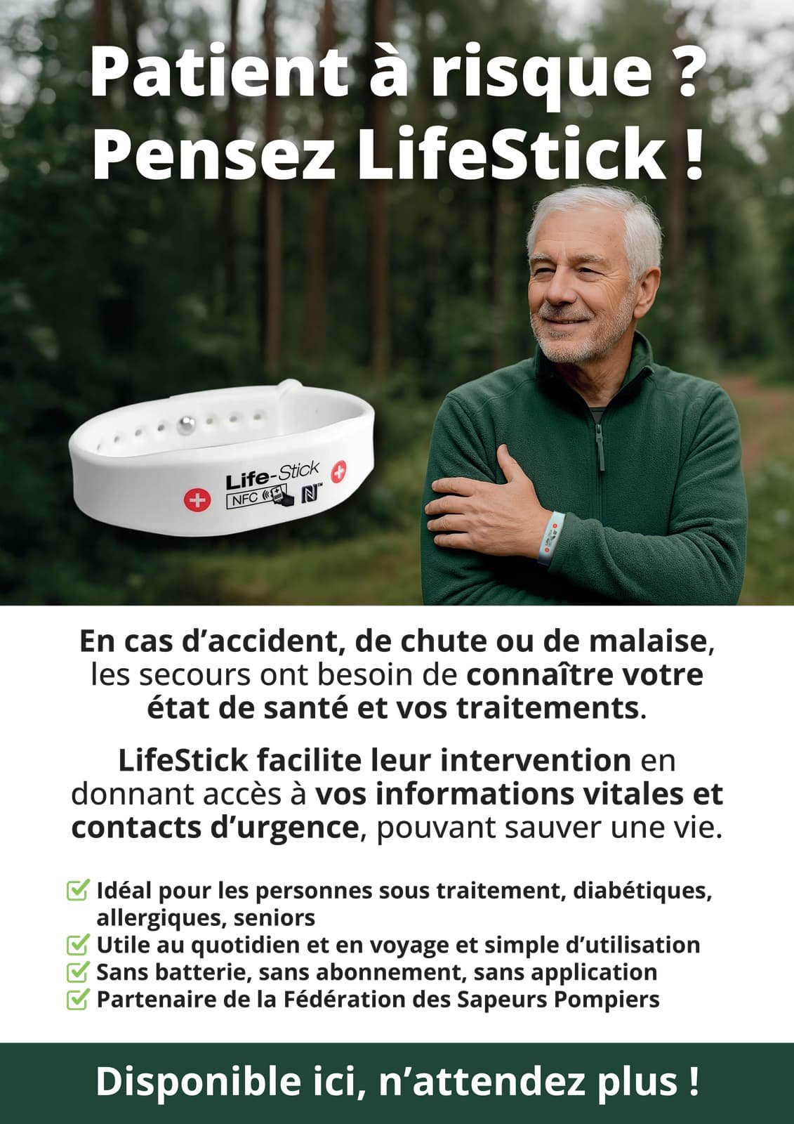 Faites découvrir à vos patients une solution simple, sans batterie, sans application et sans abonnement, pour leur sécurité au quotidien.